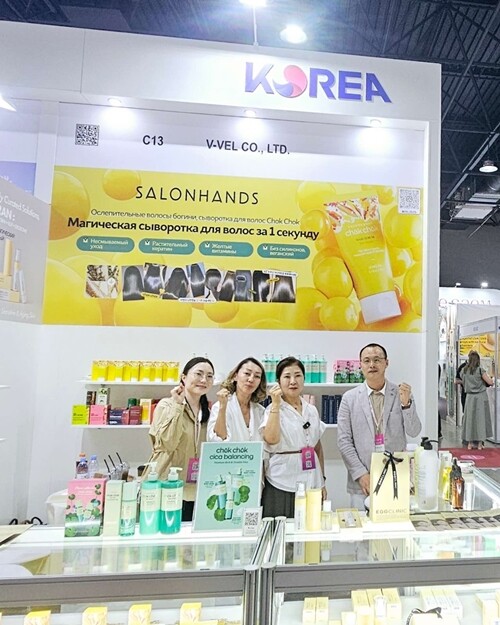 글로벌 뷰티 유통사 ㈜브이벨(V-vel)은 프리미엄 헤어·바디케어 브랜드 살롱핸즈(Salon Hands)와 함께 카자흐스탄 알마티에서 열린 ‘2025 중앙아시아 뷰티 박람회’에 참가해 신규 브랜드 ‘촉촉뷰티(chok chok beauty)’의 첫 라인업인 ‘촉촉 시카밸런싱 바디케어 3종’을 선보였다.